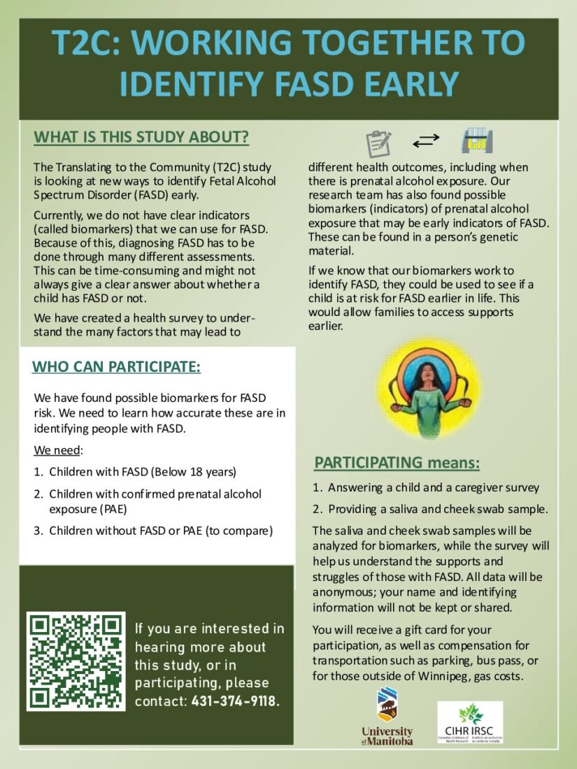 We know how important early support is for children. The Translating to the Community (T2C) study is working together with families to find better ways to recognize and support children with FASD. Taking part is simple – it involves a survey and saliva and cheek swab. See below for more information!
